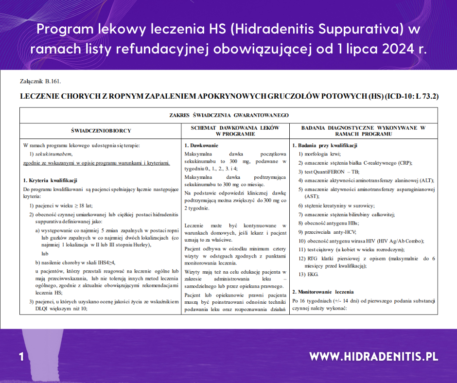 Z radością ogłaszamy wejście w życie nowego programu lekowego „Leczenie chorych z ropnym zapaleniem apokrynowych gruczołów potowych – HS (B.161.)”.