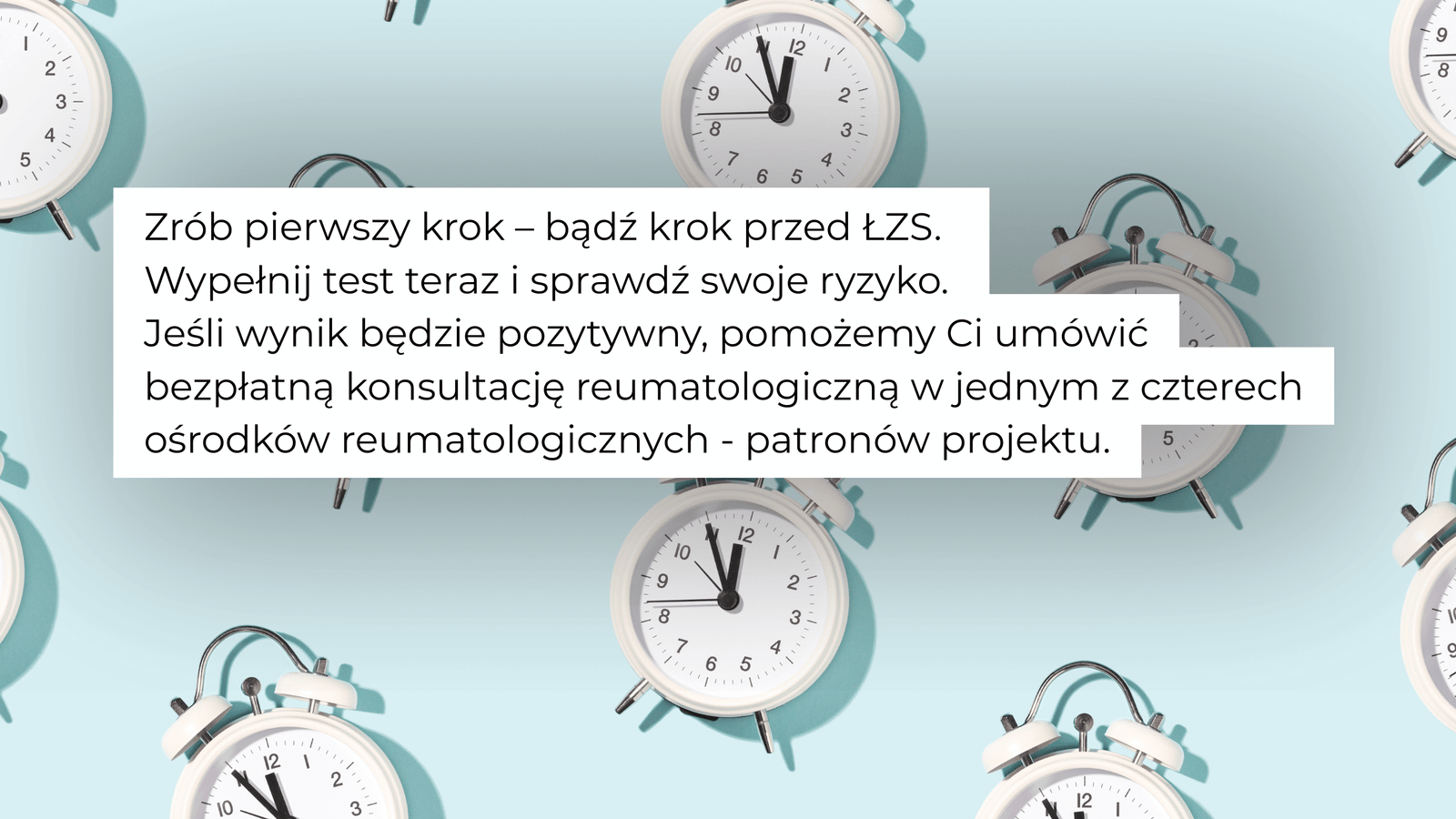 3. Skonsultuj się bezpłatnie – jeśli test pokaże ryzyko, umówisz wizytę z reumatologiem i uzyskasz wsparcie Fundacji.